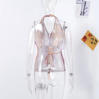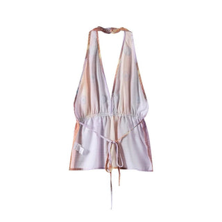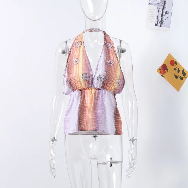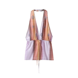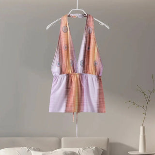 Design: A bold and stylish halter tank top featuring a flattering V-neckline, vibrant 3D print design, and an eye-catching backless silhouette. Perfect for adding a playful yet sleek touch to your wardrobe.