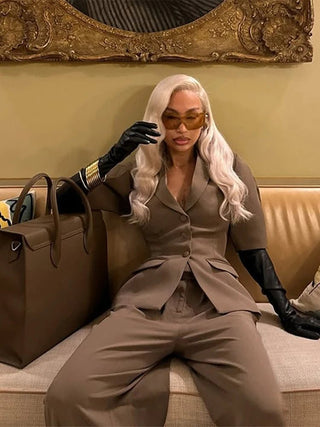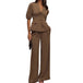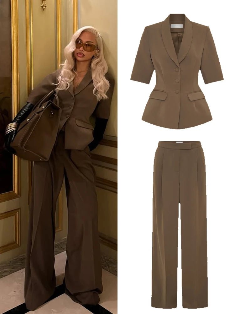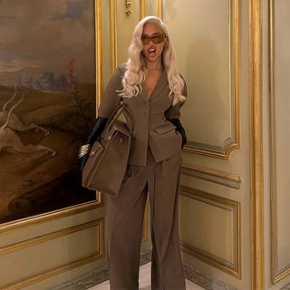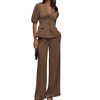 Design: A stylish casual blazer and wide-leg pants set featuring a single-breasted closure, V-neck collar, and button details. The set combines sophistication with a relaxed, comfortable fit for everyday elegance.