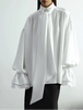 Design: A casual loose-fit white blouse featuring a turn-down collar and single-breasted closure. The solid design offers timeless simplicity, making it a versatile wardrobe staple for various occasions.