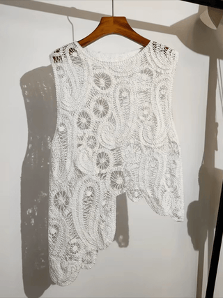 Design: A sweet and stylish two-piece set featuring a woven sleeveless tank top with a classic O-neckline and an asymmetrical skirt. Designed for a breezy, polished look with pullover closure for easy wear.