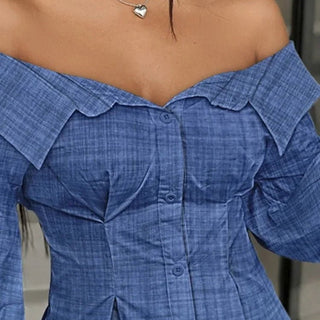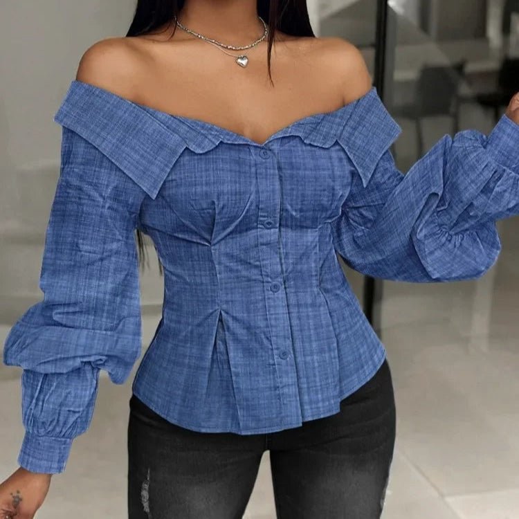 Chic Ruched Slash Neck Lantern Sleeve Blouse