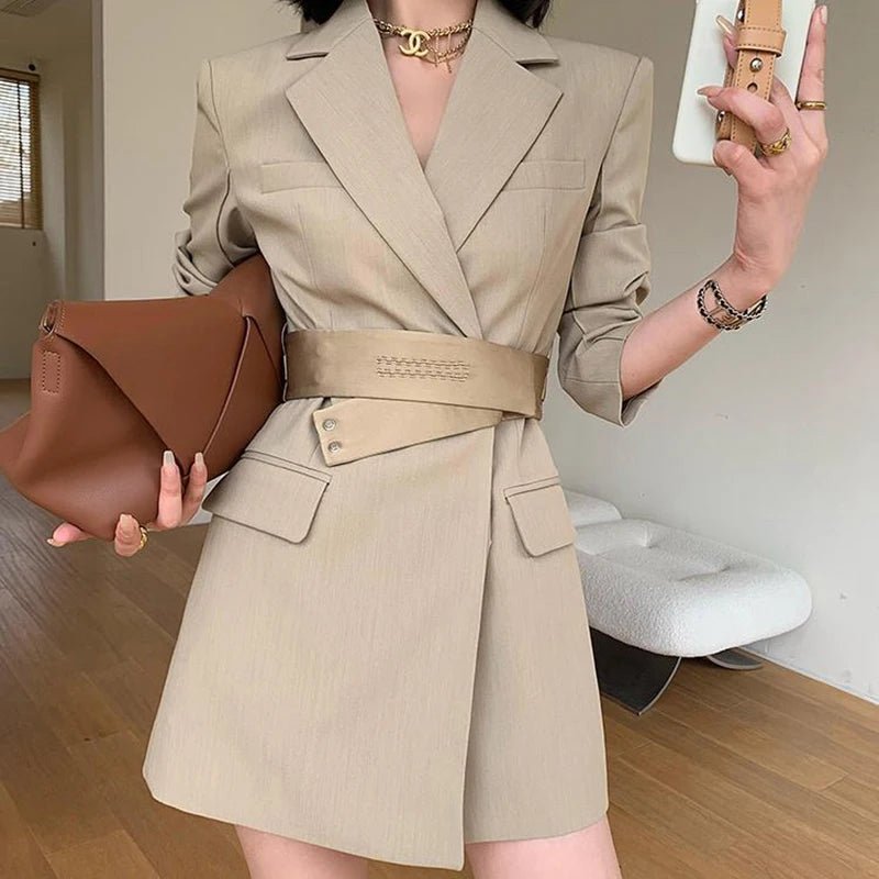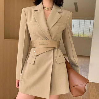 Chic Slim Fit Suit Dress with Blazer & Belt
