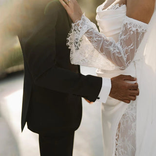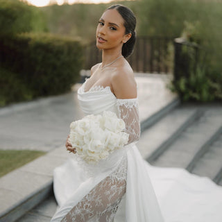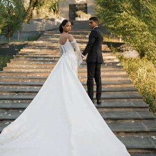 Occasion: Ideal for brides seeking a minimalist silhouette with the option to transition from ceremony to reception seamlessly.