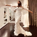 Design: Elegant mermaid wedding dress featuring a scoop neckline, off-shoulder half-flare sleeves, and 3D floral lace detailing. The floor-length silhouette includes a buttoned back, sweep train, and built-in bra for a secure and graceful fit.