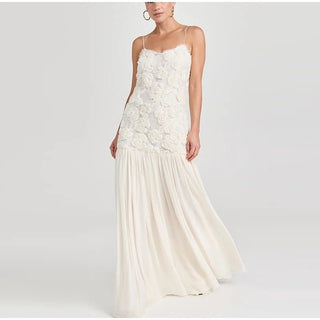 Design: A stunning floor-length dress adorned with intricate 3D flower decorations. Featuring a elegant neckline and a sleek, straight silhouette, this dress blends elegance with a bold leopard print, perfect for making a statement at any event.