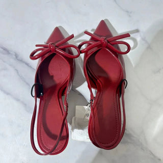 Design: Chic pointed-toe mules featuring a sleek, solid-color finish, an elegant butterfly-knot detail, and an open side vamp for a breathable yet sophisticated touch.