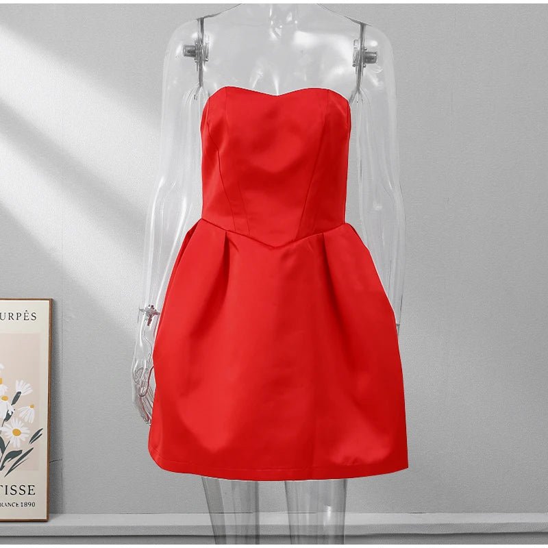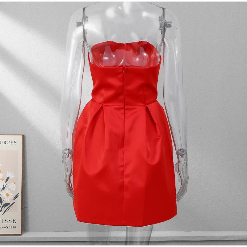 Design: Make a bold statement in this sultry and sophisticated red strapless backless party dress. Featuring a sleek bodycon fit that hugs your curves, this dress exudes confidence and elegance. The strapless and backless design adds a touch of allure, making it the perfect choice for evening events, club nights, or any occasion where you want to shine.