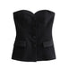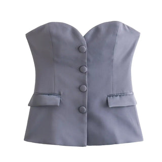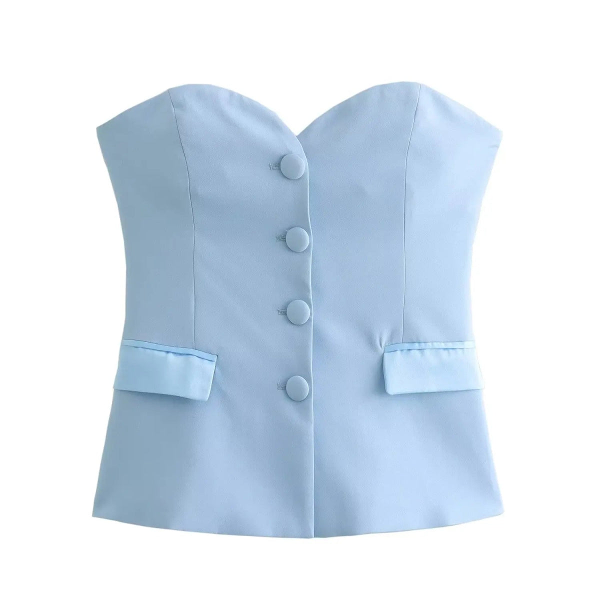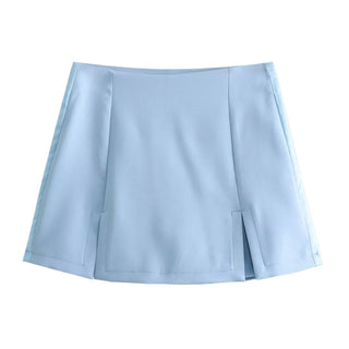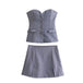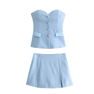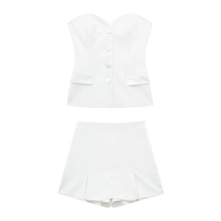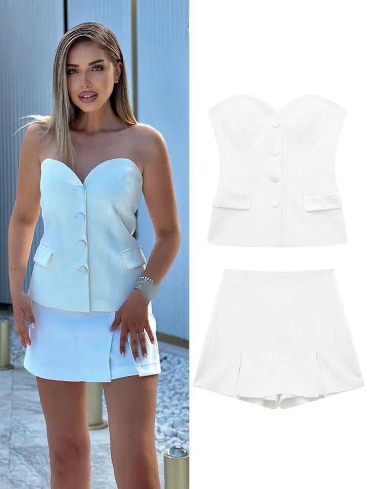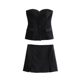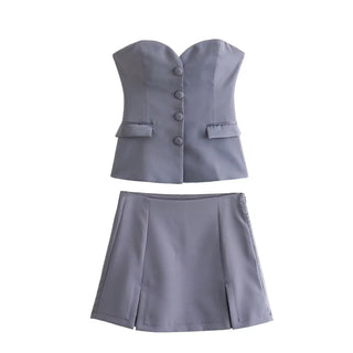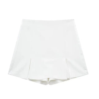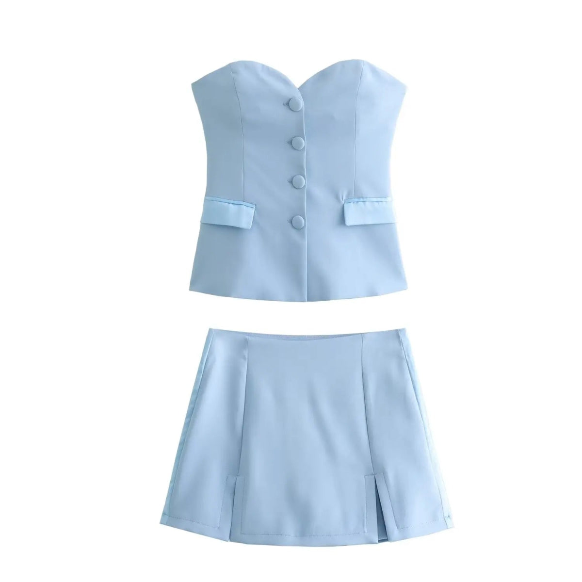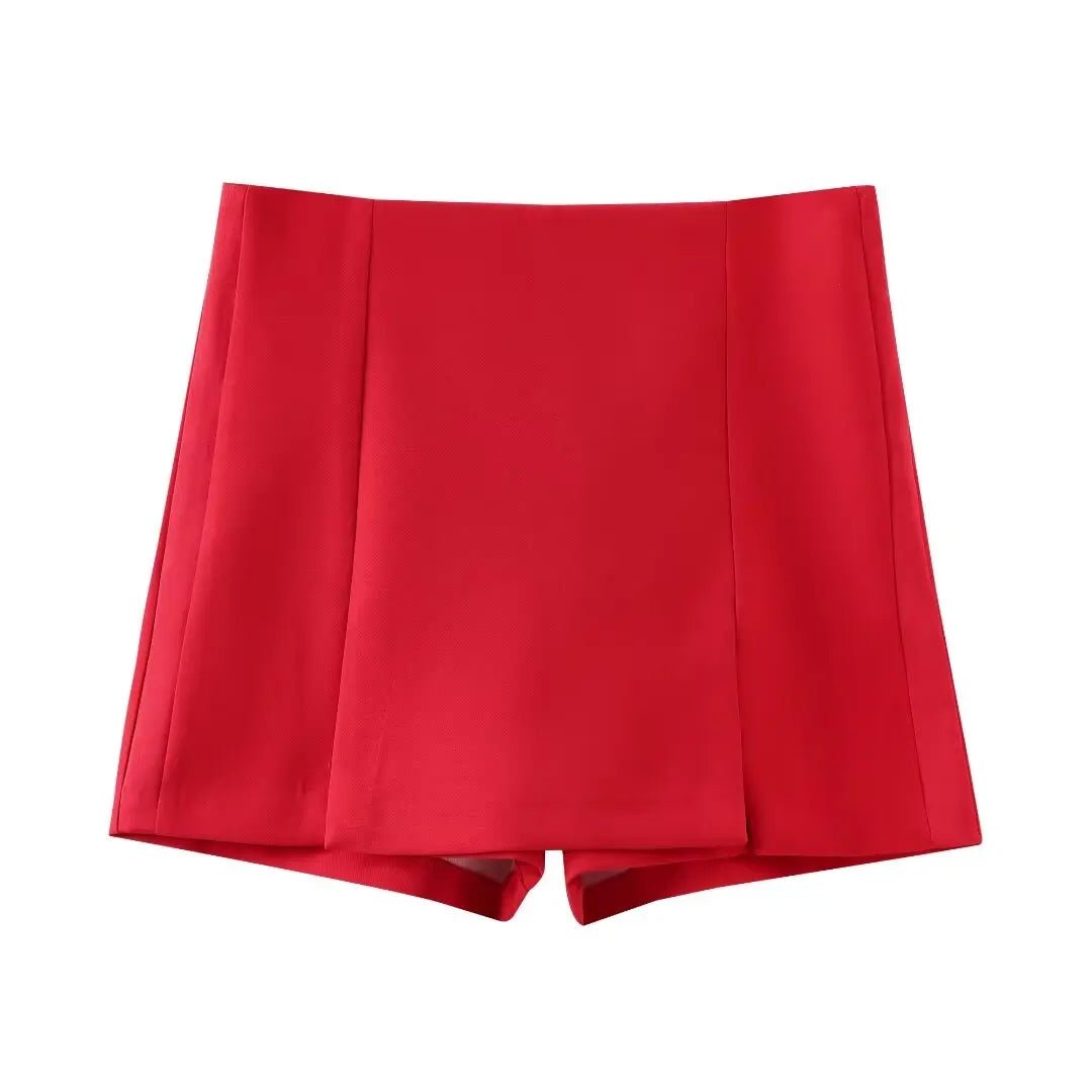 Design: A chic slim-fit suit featuring a high-waist design, V-neck collar, and ruched detailing. The single-breasted closure and A-line silhouette add a touch of sophistication, while the mini-length hem enhances its modern appeal.