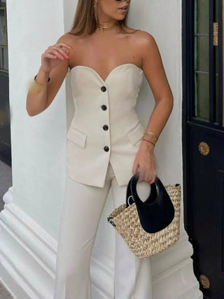 Fit Type: Loose-fitting blazer with a tailored high-waist bottom for a balanced and elegant silhouette.