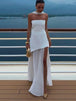 Style Features: Off-shoulder strapless design, ankle-length flow, minimalist solid color, high street flair.