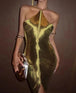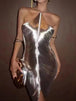 Fashion Backless Halter Evening Dress designed for a chic look with a slim fit and sheath silhouette. Crafted from high-stretch polyester, this mid-calf dress features a stylish halter neckline and decorative tassels for a playful touch. The sleeveless design and pullover closure ensure ease of wear, while the natural waistline flatters the figure. Made from synthetic fibers, this solid-patterned dress is perfect for elegant evening events, combining comfort and sophistication. Free from high-concern chemicals, it’s a must-have for your formal wardrobe.