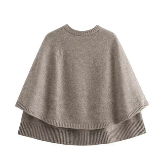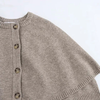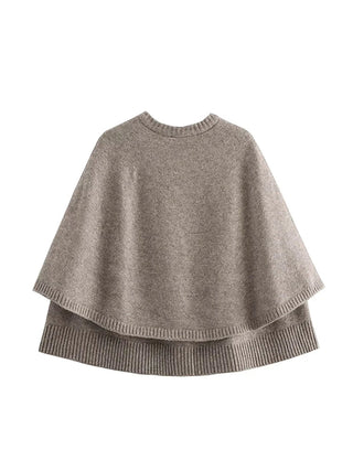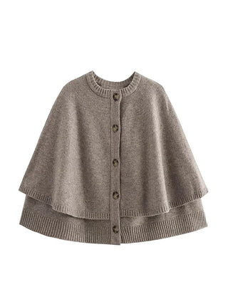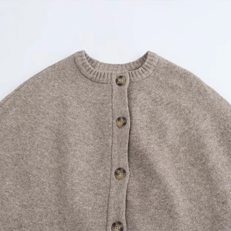 Design: A cape-inspired knitted cardigan with an O-neck collar, single-breasted button closure, and flowy, sophisticated silhouette.