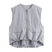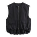 This streetwear-inspired vest offers a loose fit and casual style, made from durable polyester material. Featuring an O-neck design and a solid pattern, it is ideal for layering. The vest has a short length (4-16 inches) and is adorned with a functional zipper closure, adding both style and convenience. The minimalistic design, coupled with the zipper detail, makes this outerwear perfect for creating a laid-back yet trendy look.