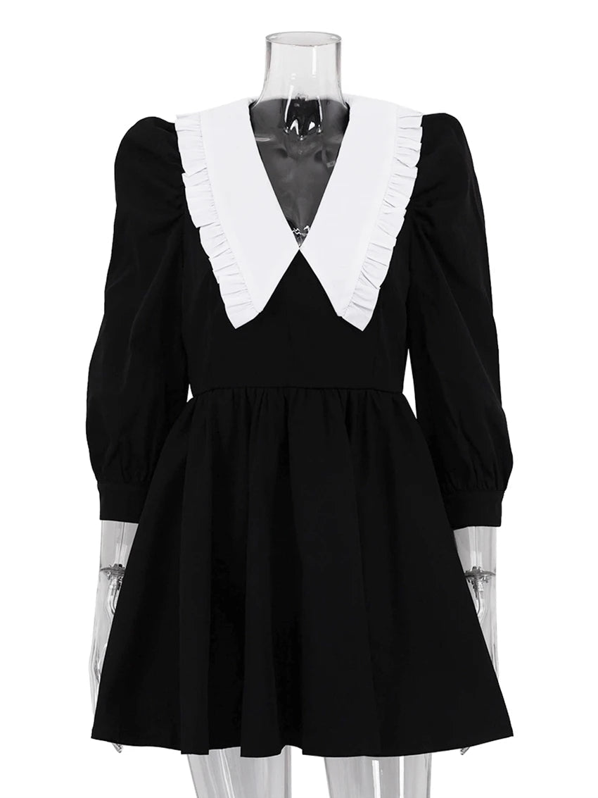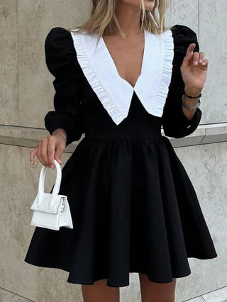 Fashionable Black Patchwork Office Dress