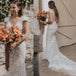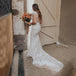 Turn heads in this vintage-inspired mermaid bridal gown featuring a plunging V-neckline, cap sleeves, and 3D floral lace. The slim-fit silhouette, open back, and chapel train create an elegant and timeless look. Customizable with tiered lace details, a built-in bra, and a natural waistline for the perfect fit.