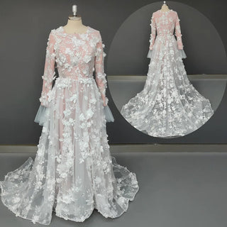 Decoration: Intricate appliques, delicate lace, and subtle beading add elegance and dimension to the dress, creating a sophisticated floral princess look.