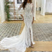 Elevate your bridal look with this front slit lace wedding dress, featuring a timeless O-neck and full-length sleeves. Crafted from delicate lace with a polyester base, this floor-length trumpet silhouette is both elegant and modern. The sweep train adds a graceful touch, while the front slit offers a hint of allure. Designed with a backless feature, built-in bra, and natural waistline, this bespoke gown ensures a perfect fit for your special day, blending simplicity with striking details.