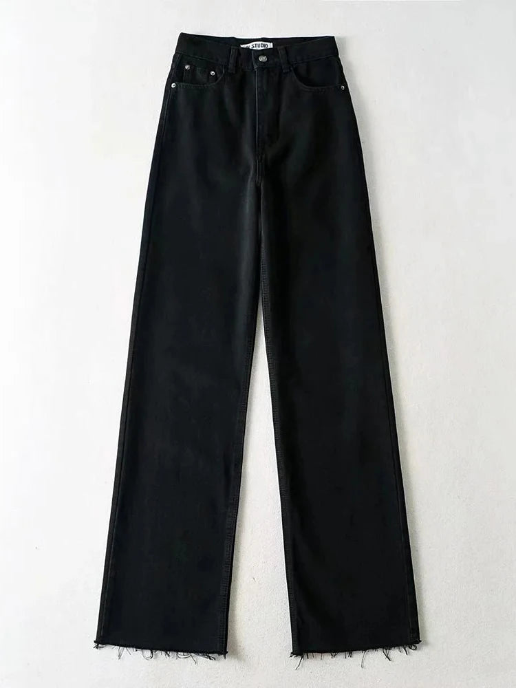 Design: A relaxed take on a classic silhouette, these high-waist baggy jeans feature a straight leg cut, zipper fly closure, and subtle stretch for added comfort. The knit-woven cotton denim adds a soft texture with a laid-back vibe.
