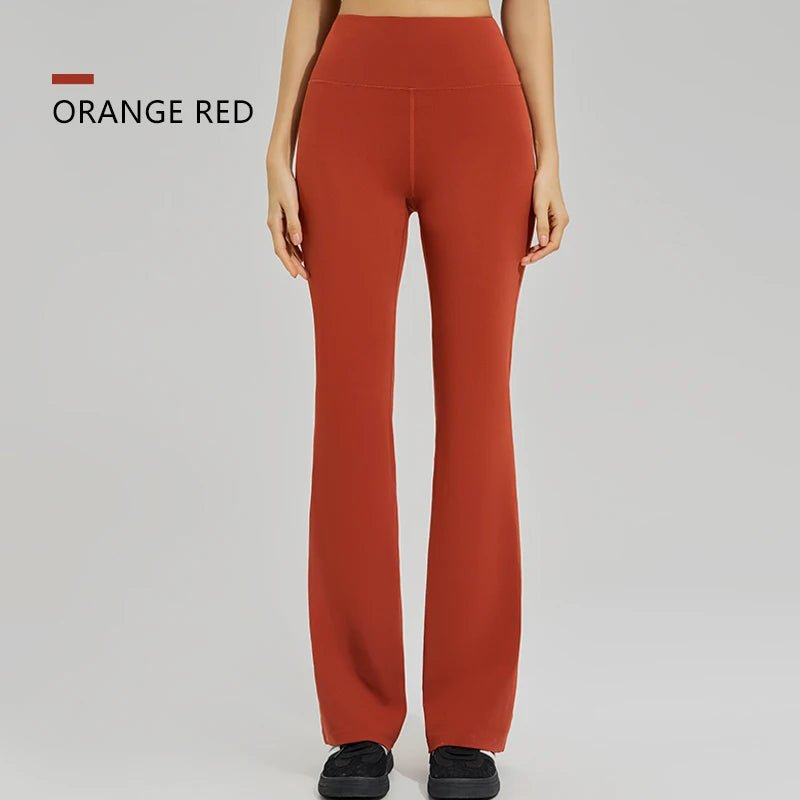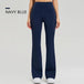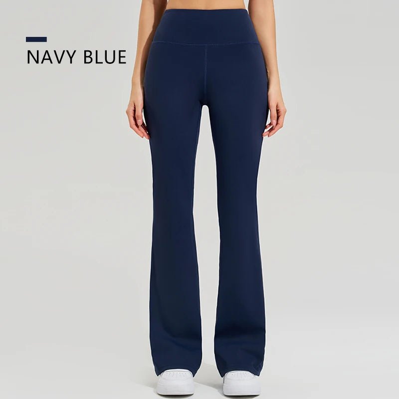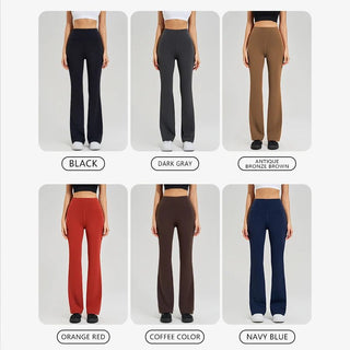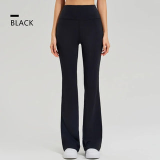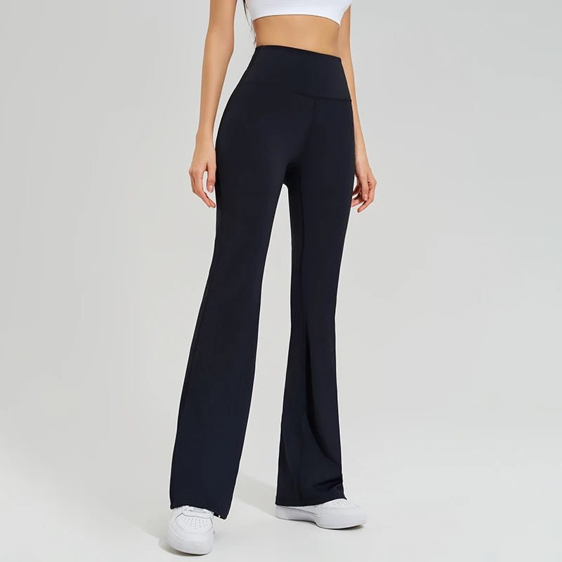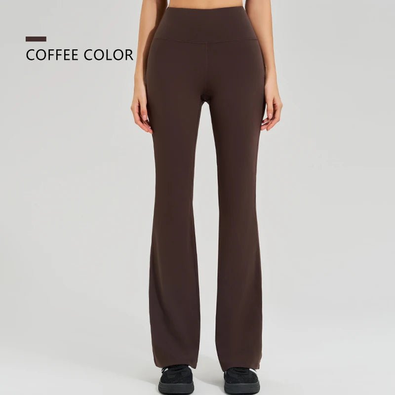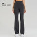 Women’s high-waist micro flare yoga pants made from Lycra and nylon with a knit construction. Features a high-elastic waistband, utility pockets, and quick-dry fabric, perfect for sports and running. Full-length, flared fit for comfort and style during yoga or active wear.
