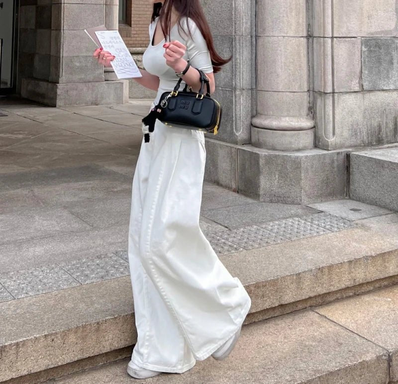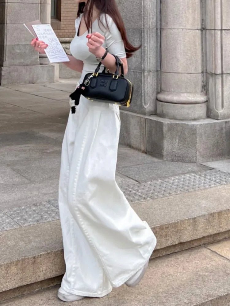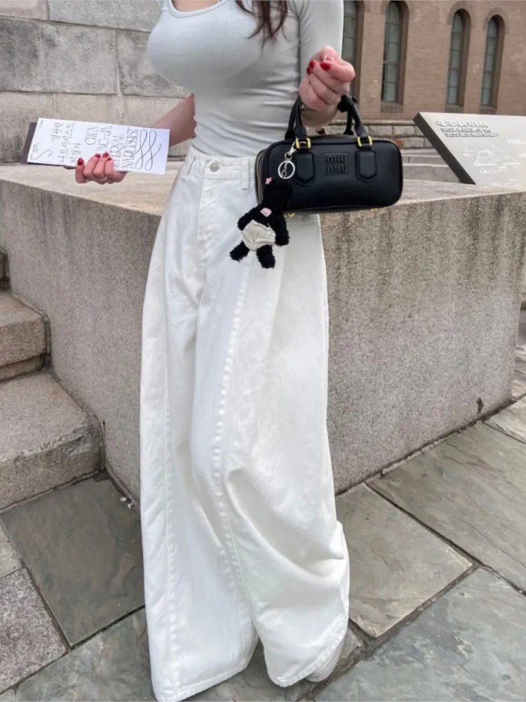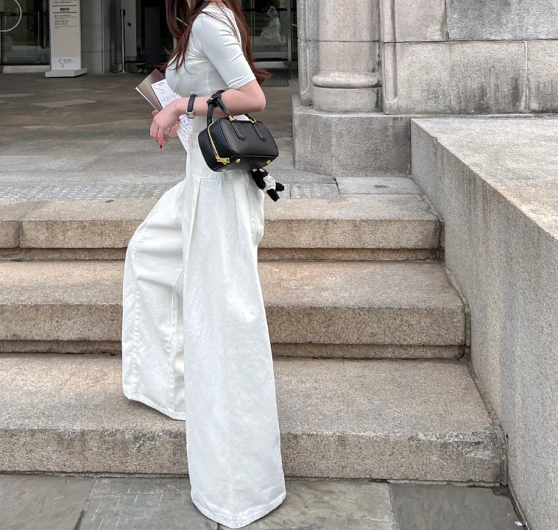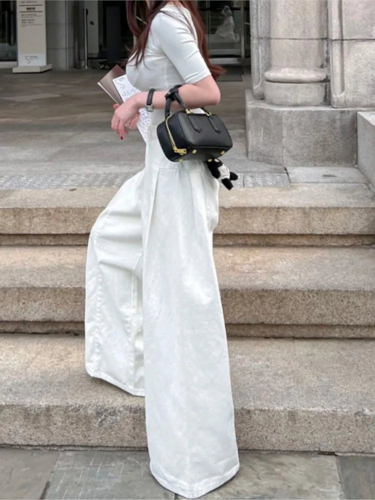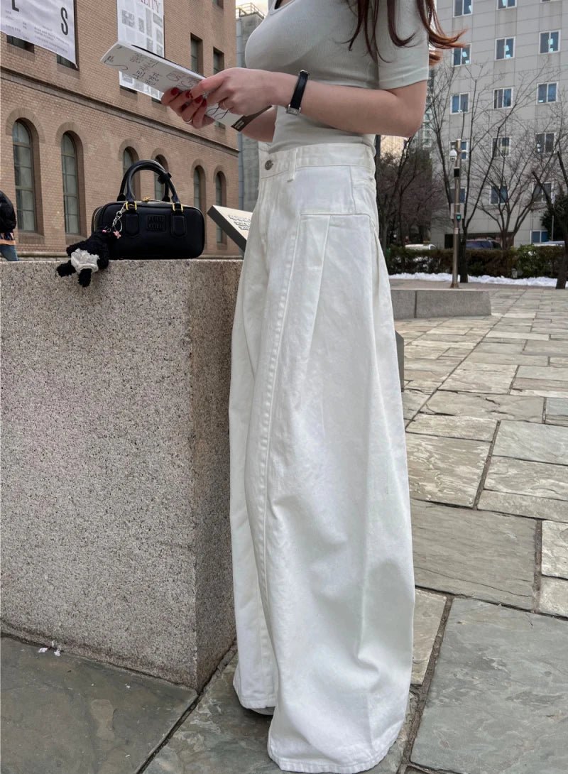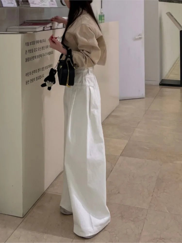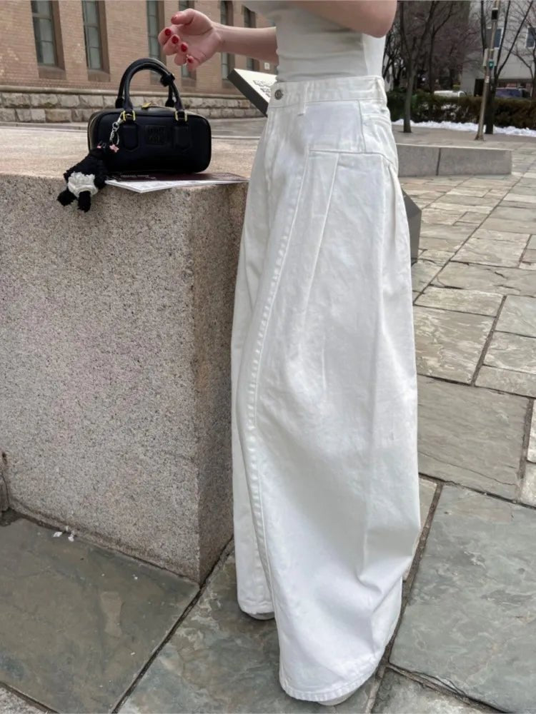 Upgrade your casual style with these high-waist wide-leg jeans for women. Made from a cotton-polyester blend, these full-length trousers feature pleated details, button fly closure, and functional pockets. With a non-stretch, regular fit and straight-leg silhouette, they’re perfect for effortless spring and summer outfits. A versatile choice for modern fashionistas.