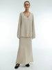 Design: A chic knitted V-neck sweater and ankle-length skirt set, featuring a loose-fitting silhouette for a relaxed and stylish look. The pullover top and elastic-waist skirt provide comfort, making it ideal for high-street fashion.