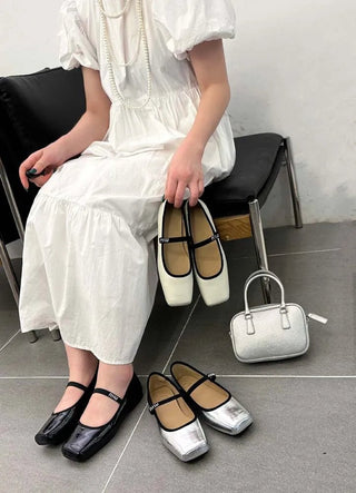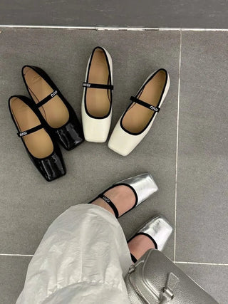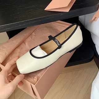 Leather Ballet Flats Slip-on Square Toe Shoes