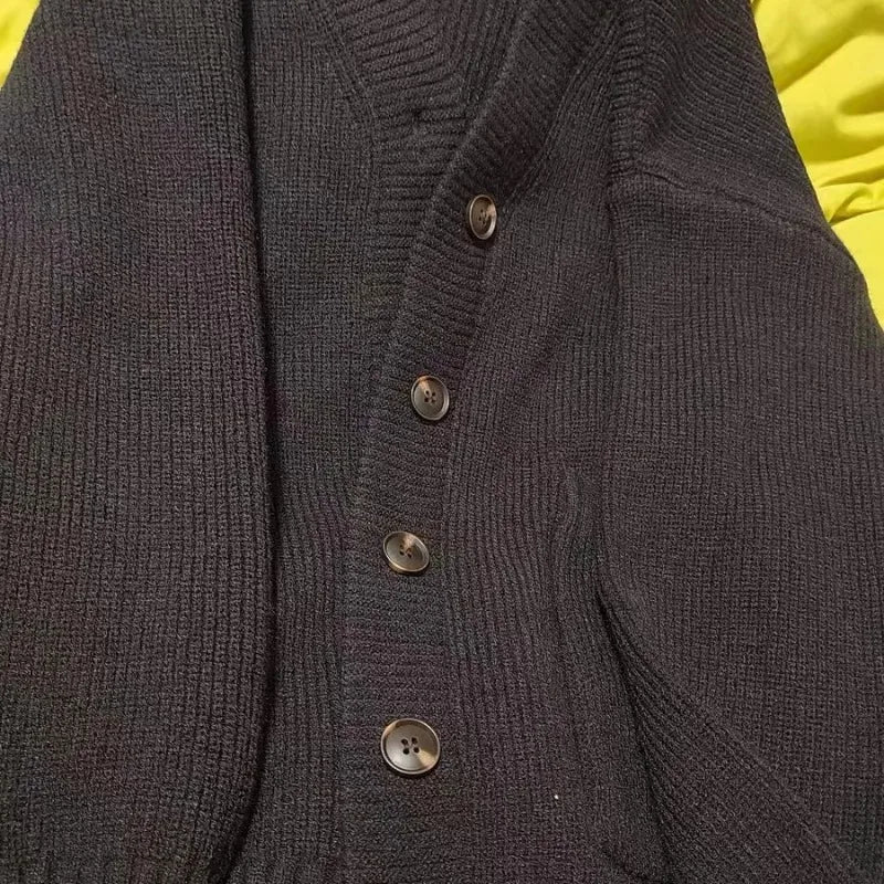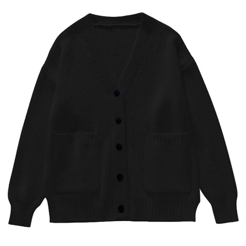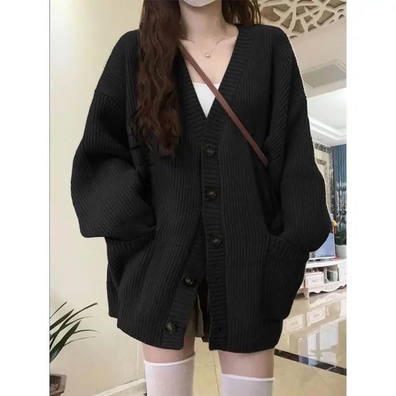 Design: A long, loose-fit knit cardigan featuring a button-down front, V-neckline, and full-length sleeves for a timeless and versatile look.