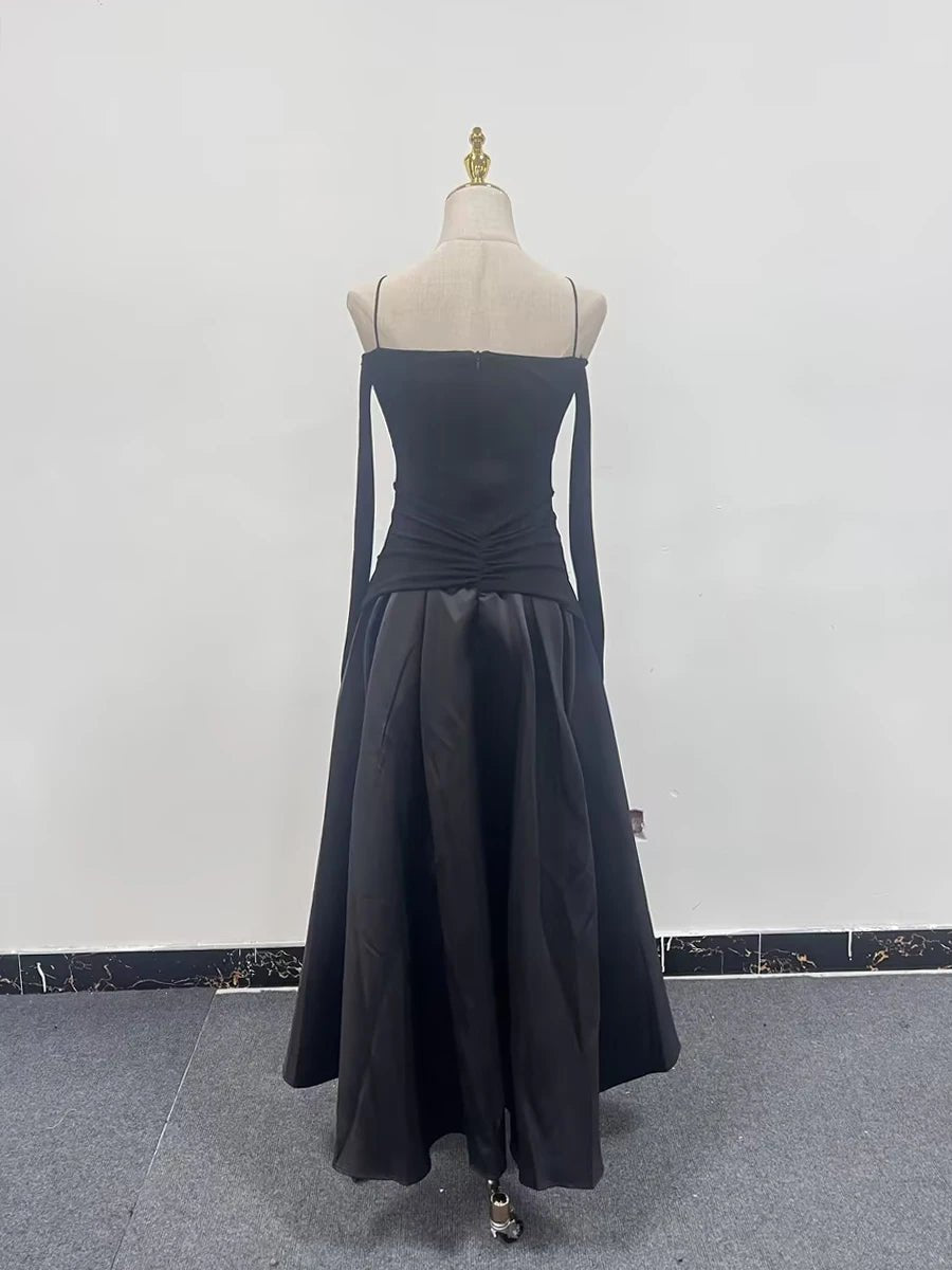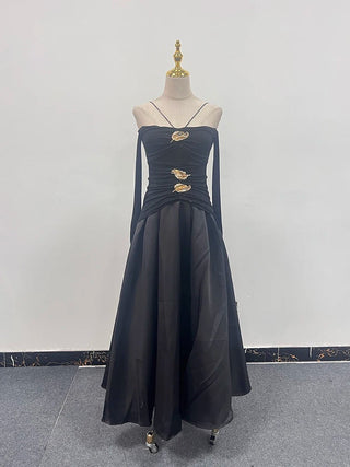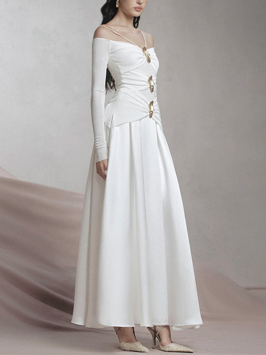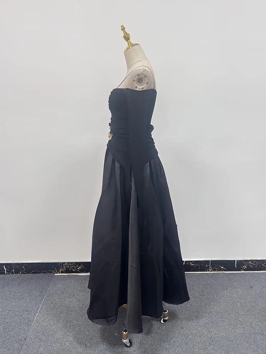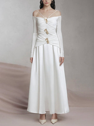 Design: A flattering ankle-length A-line dress with long sleeves, featuring a slash neck and button decoration for a touch of elegance. The empire waistline enhances the slimming effect, making it perfect for autumn events.