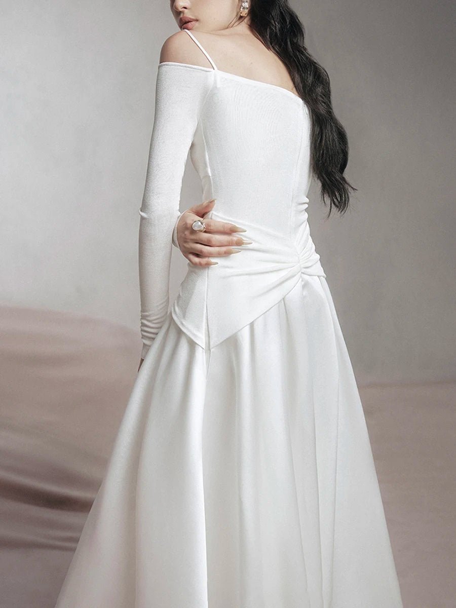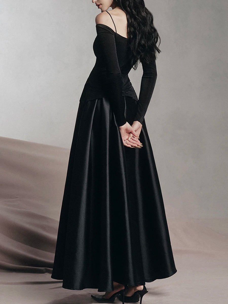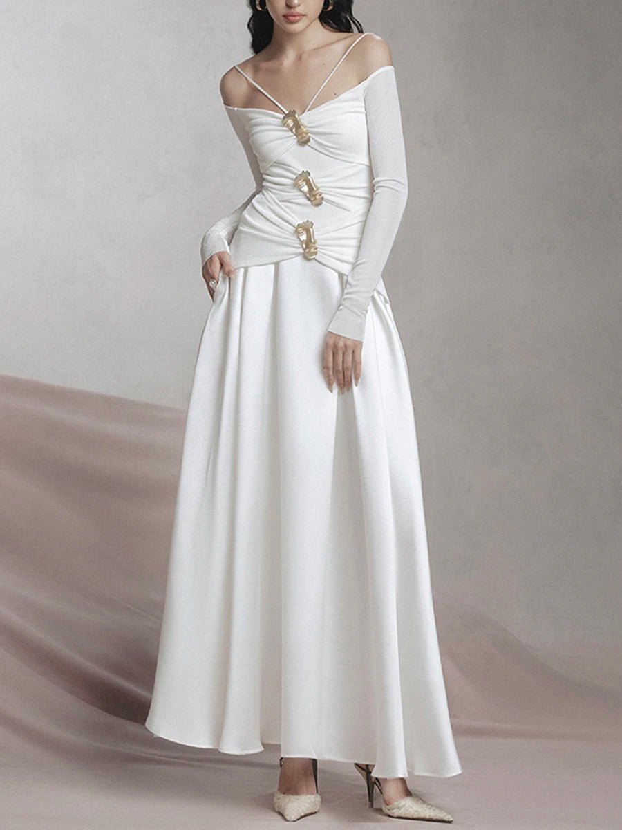 Design: A flattering ankle-length A-line dress with long sleeves, featuring a slash neck and button decoration for a touch of elegance. The empire waistline enhances the slimming effect, making it perfect for autumn events.
