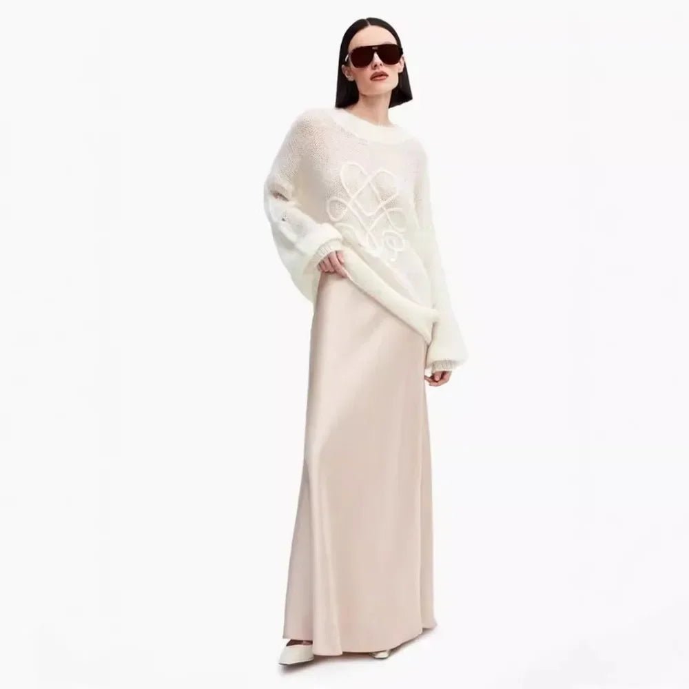 Design: A casual round-neck pullover sweater featuring delicate embroidery and long sleeves. The loose fit and solid pattern add a relaxed yet stylish touch.