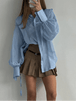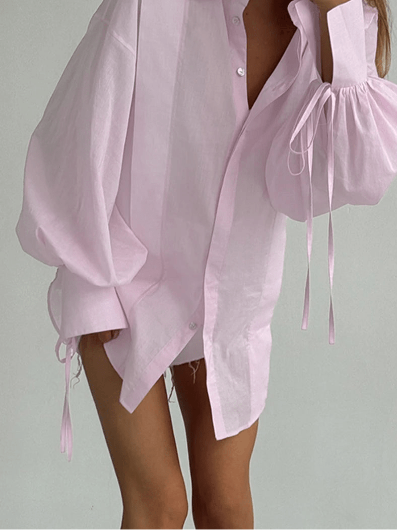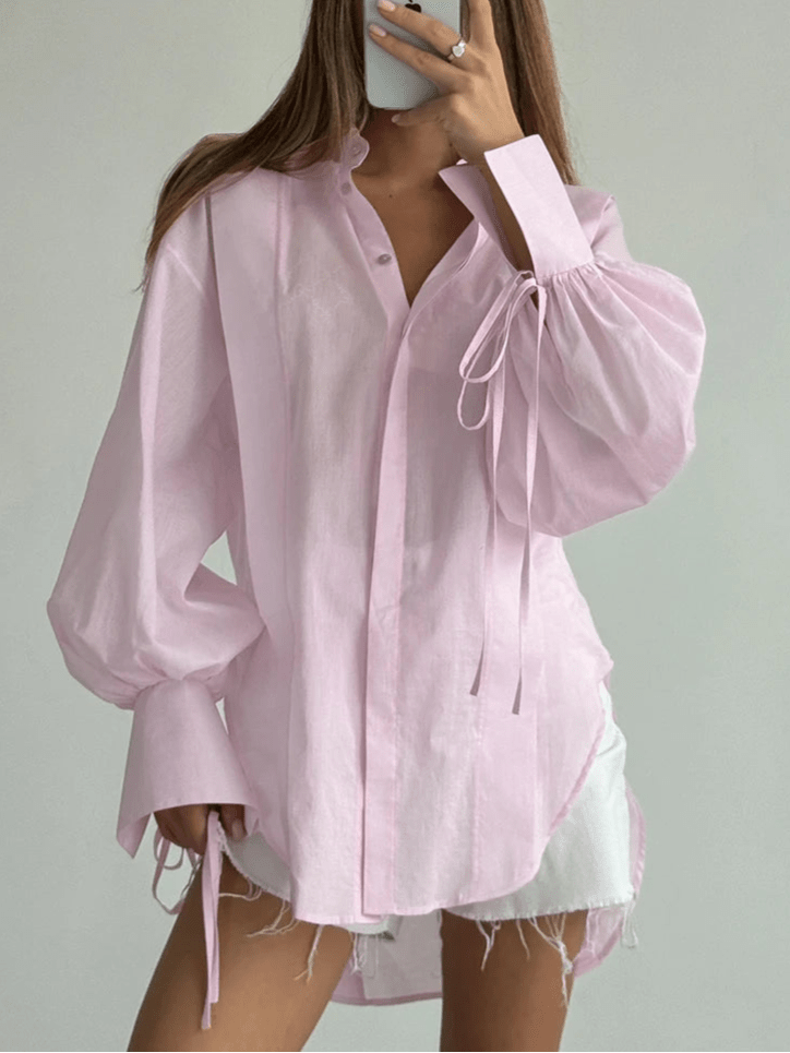 Design: A casual yet chic loose-fit pink cotton shirt featuring a classic turn-down collar and single-breasted closure. The woven fabric adds structure, while the full-length sleeves offer a timeless look.