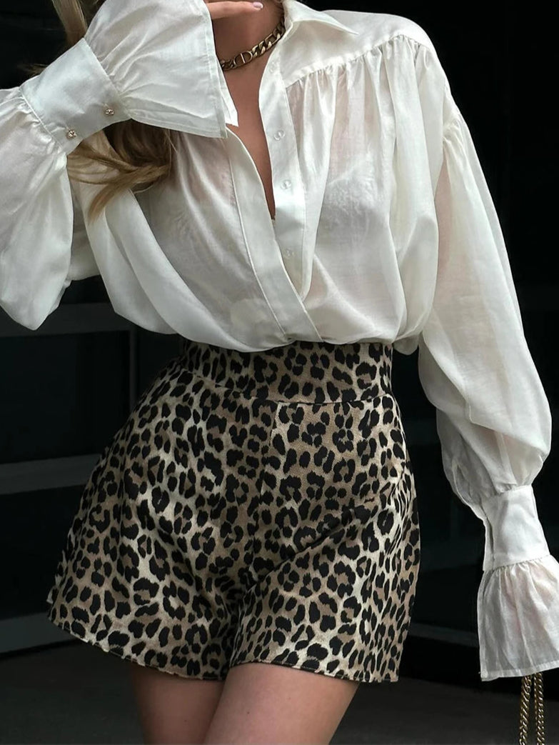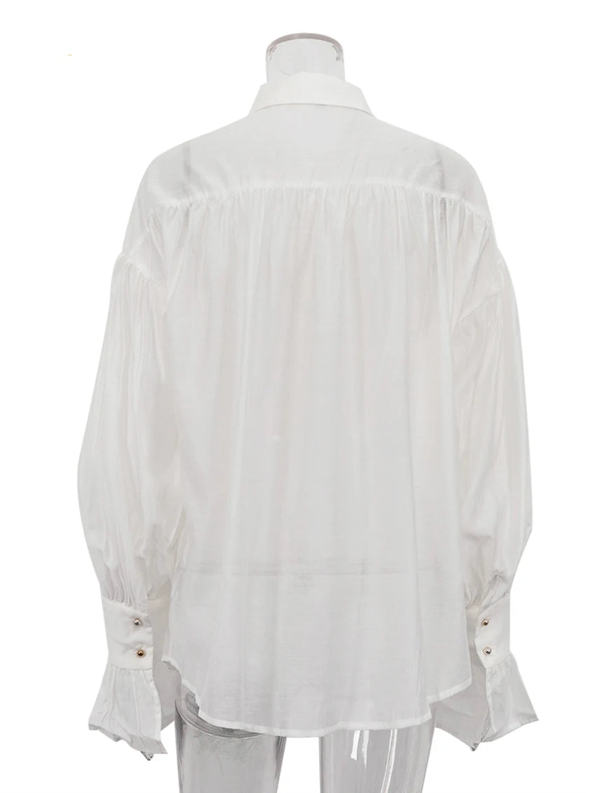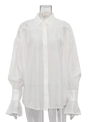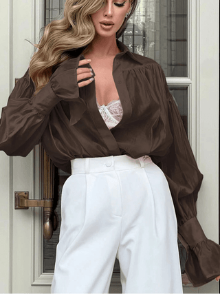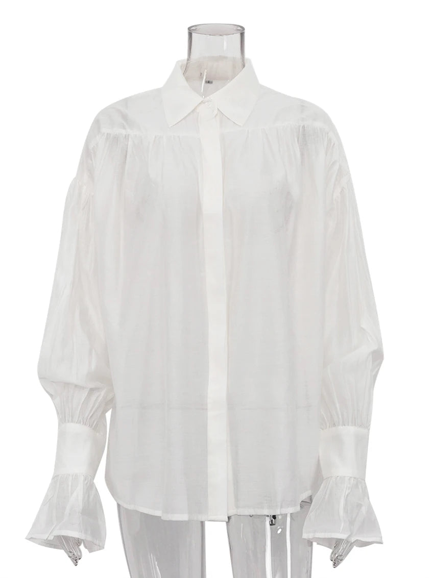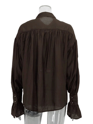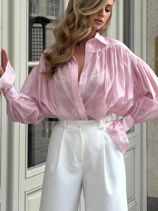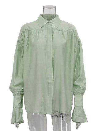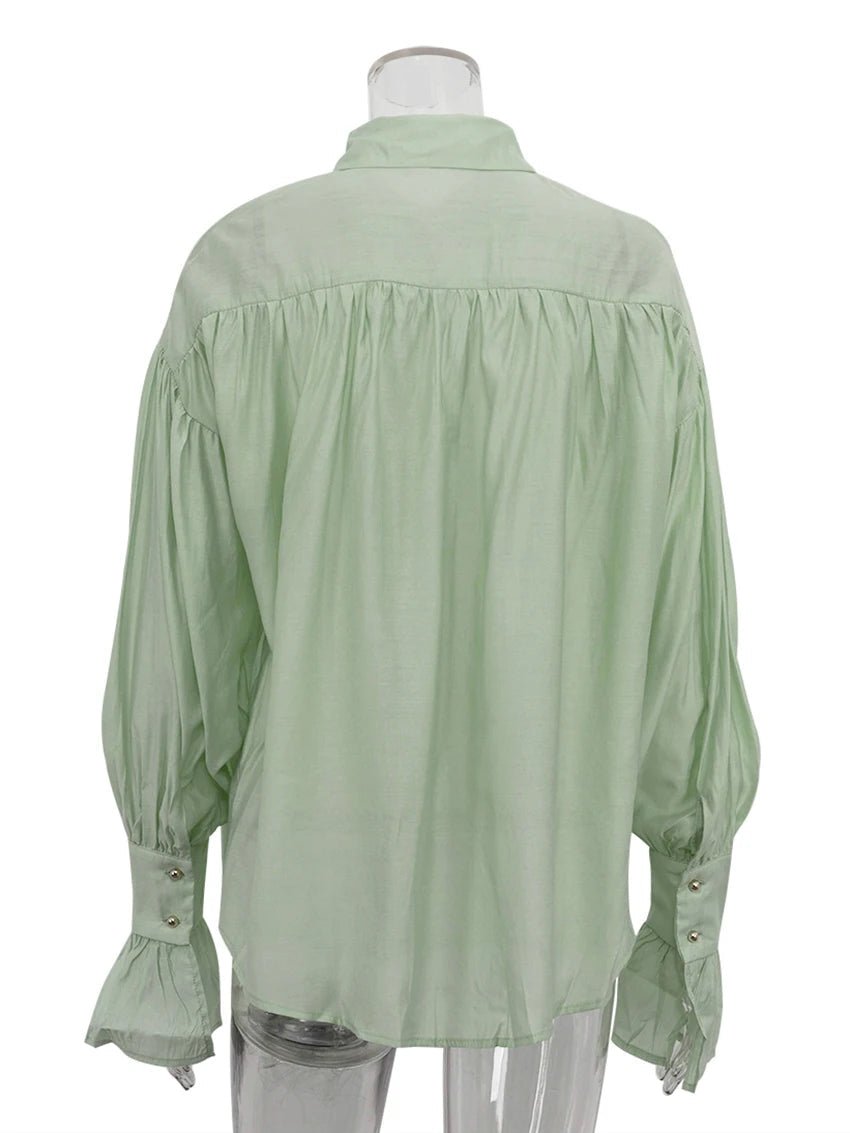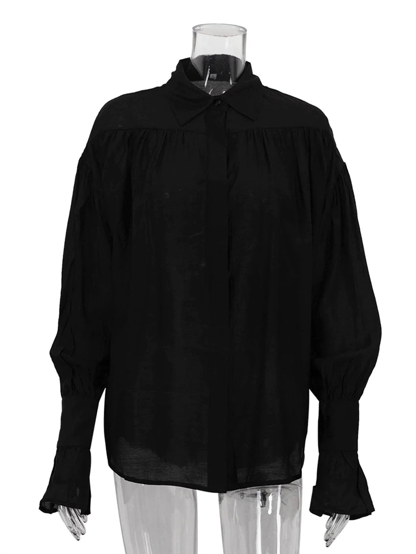 Design: A sophisticated long-sleeve blouse featuring a turn-down collar and a single-breasted closure. The loose fit and woven fabric create an effortlessly polished look, perfect for office wear.