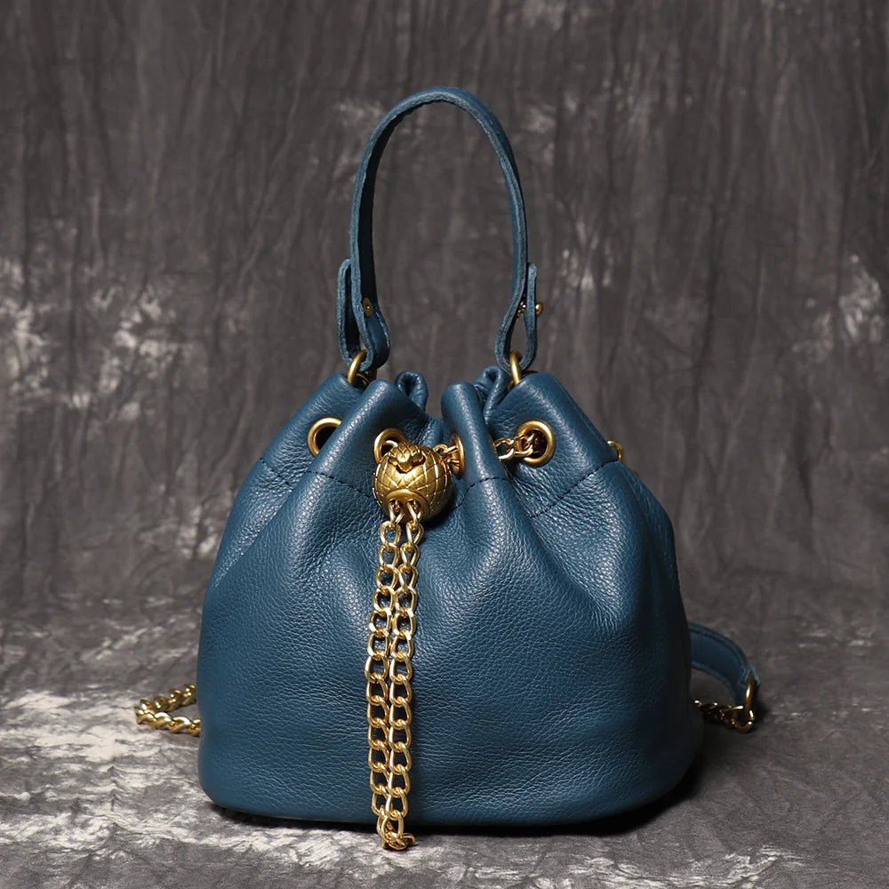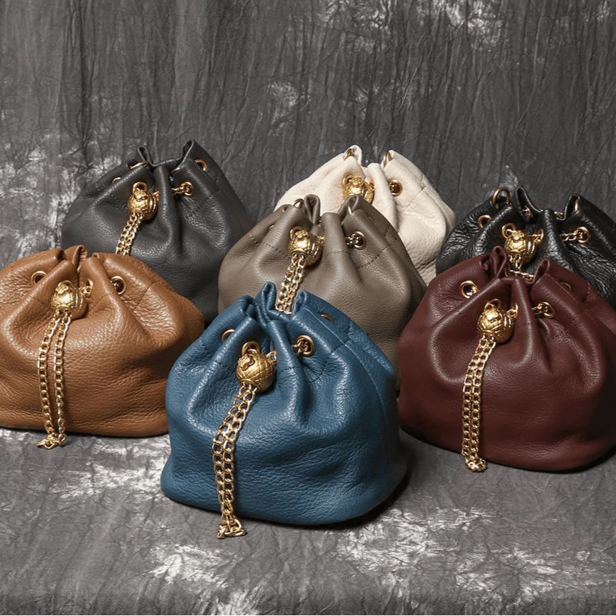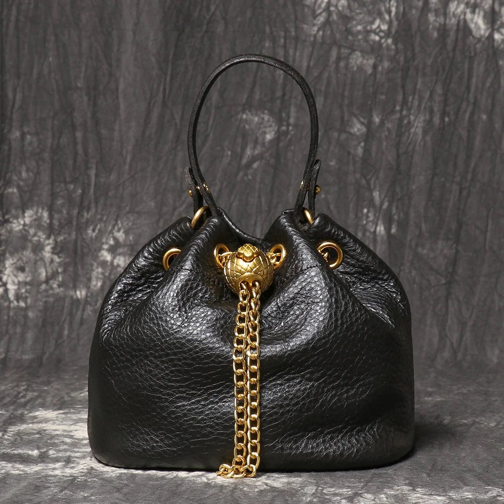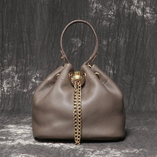 Metal Drawstring Genuine Leather Bag