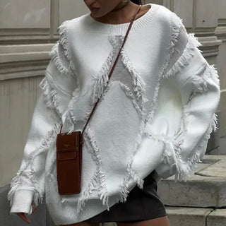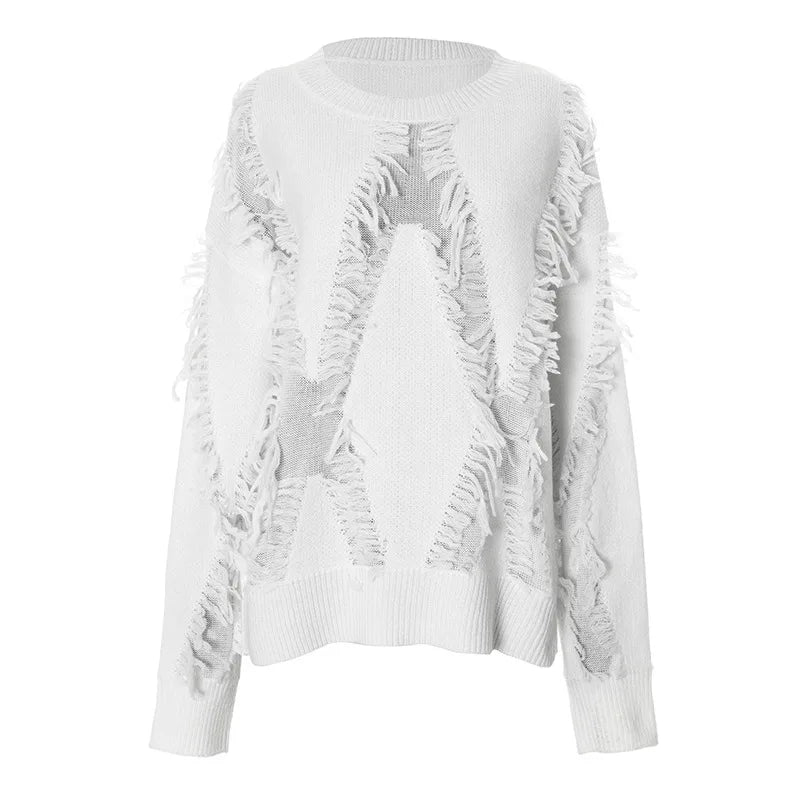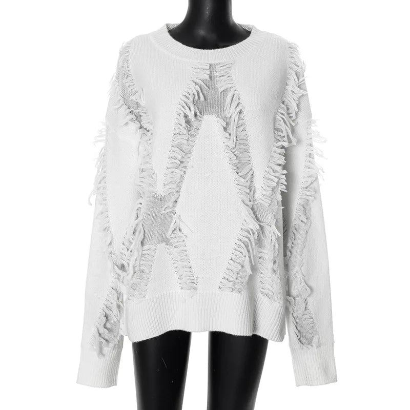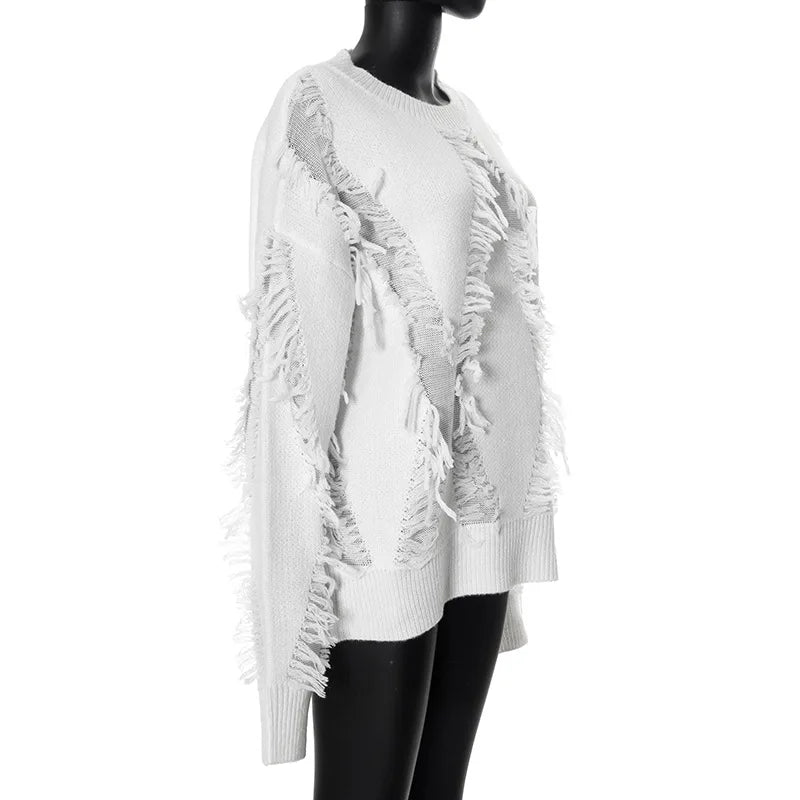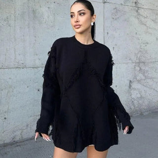 Design: Cozy meets edgy with this Y2K-inspired sweater, featuring a chic O-neck, hollow patchwork details, and playful tassel accents for a high-street statement look.