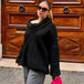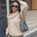 Oversized off-shoulder knit sweater for women featuring a slash neck, full sleeves, and a loose fit. Made from thick, high-stretch polyester with spliced detailing, this casual pullover is perfect for vintage-inspired autumn and winter street fashion.