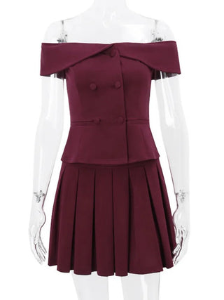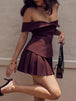 Off-Shoulder Top & Pleated Mini Skirt Set