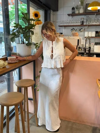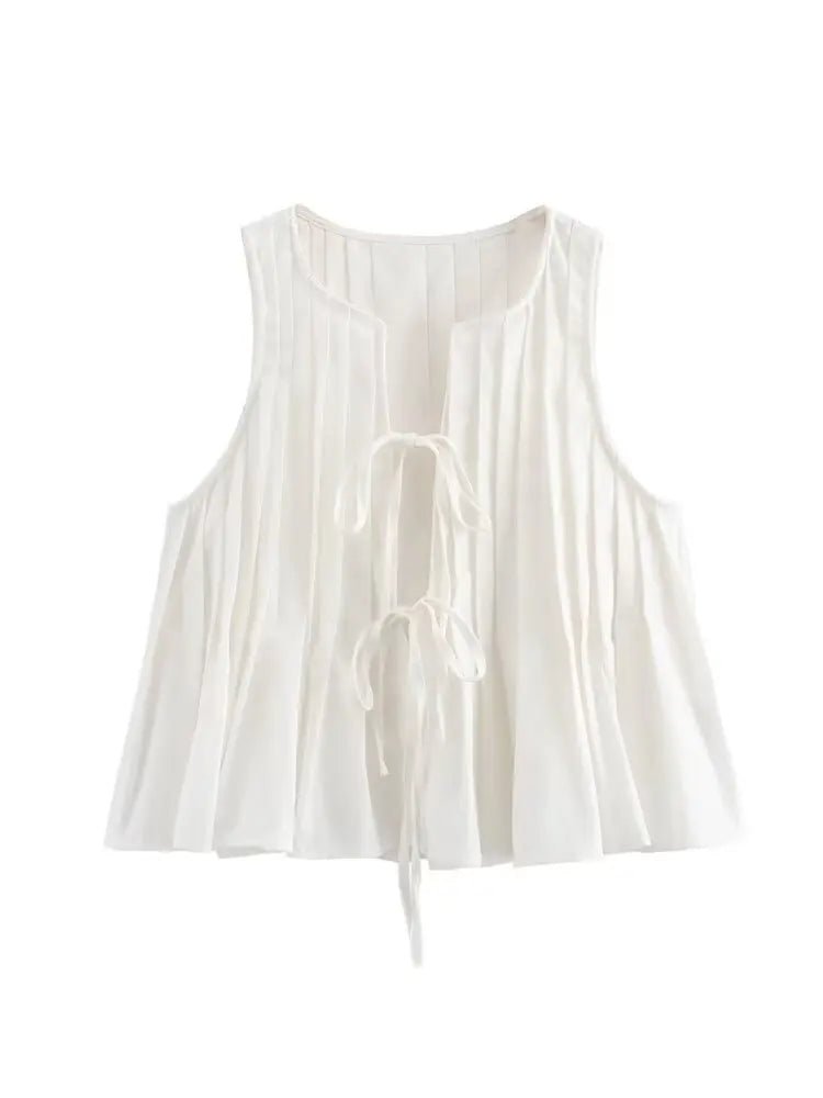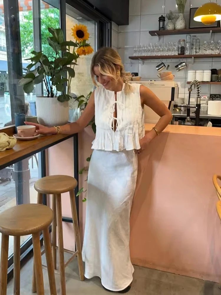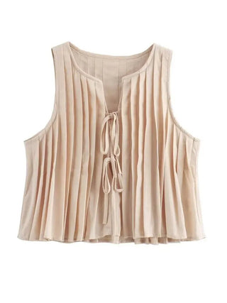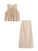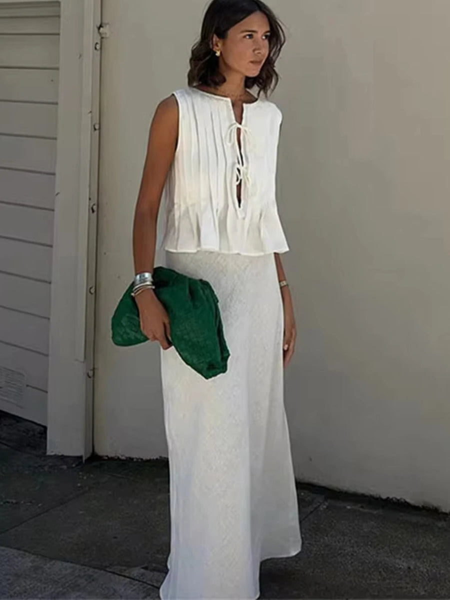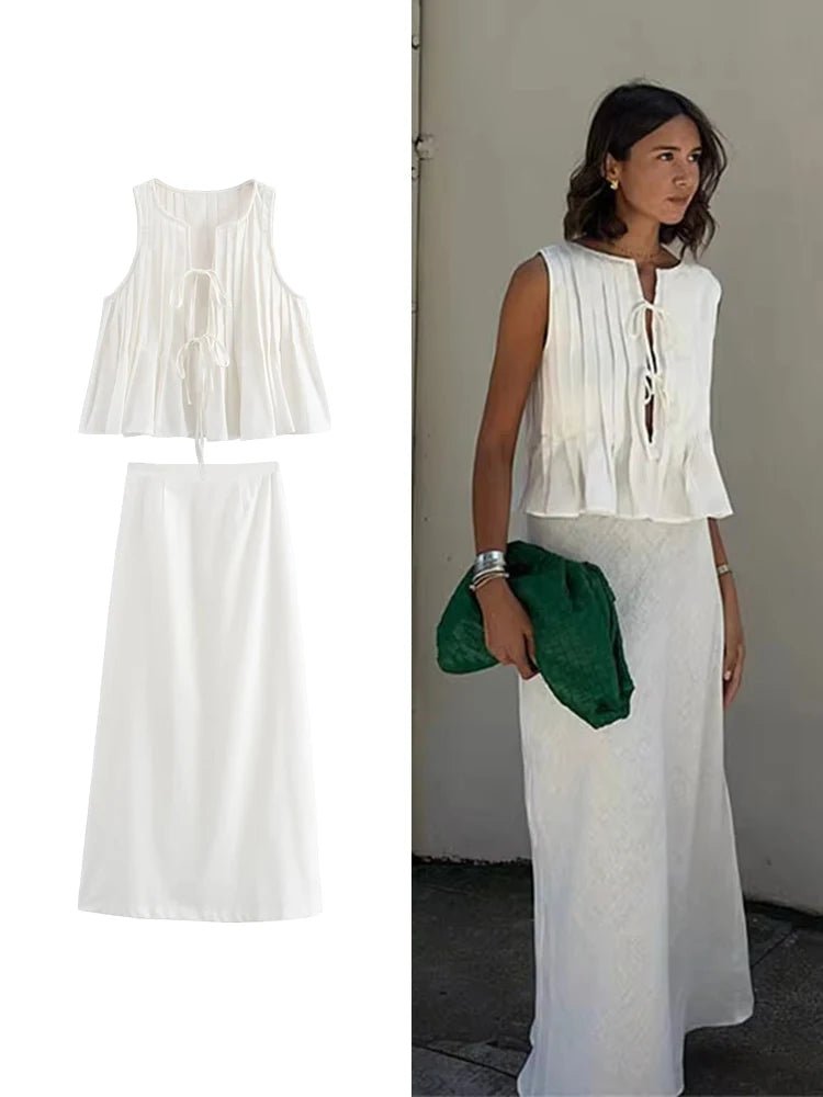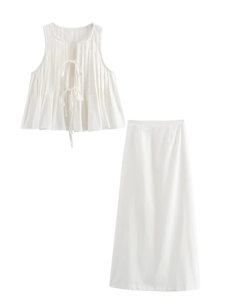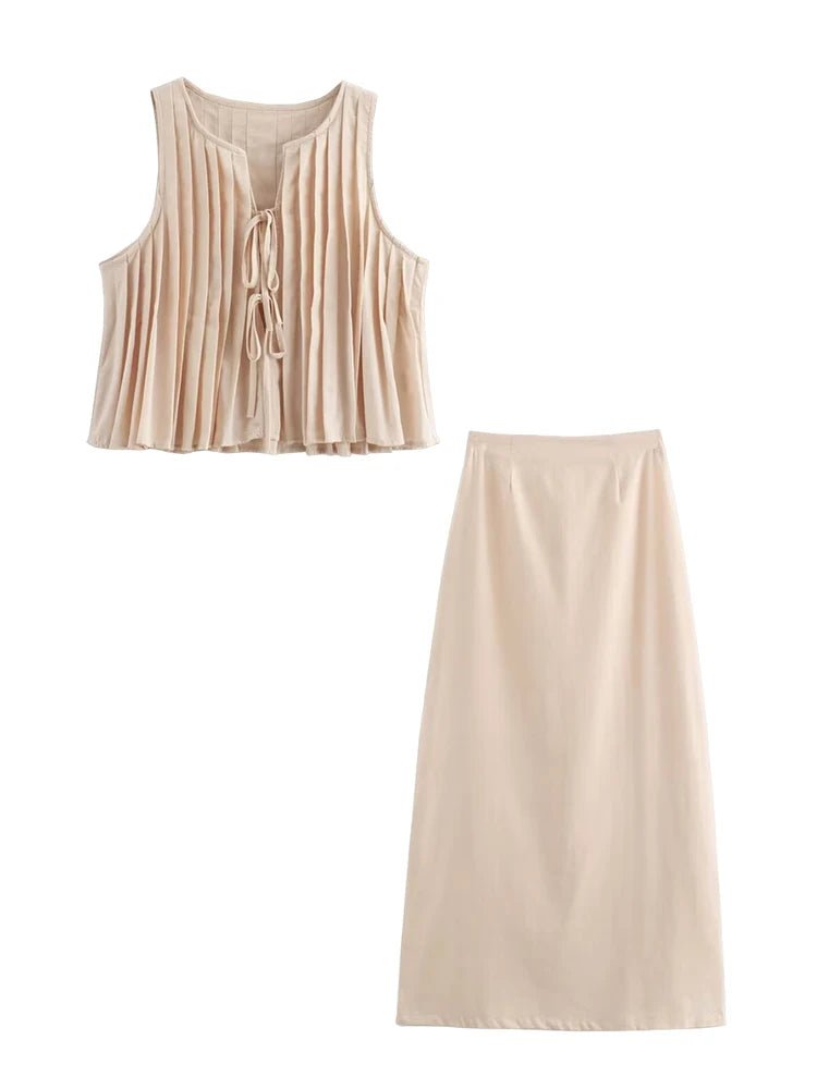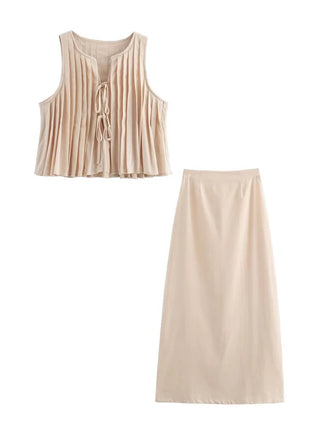 Pleated Tie Tops and High Waist Skirt Set