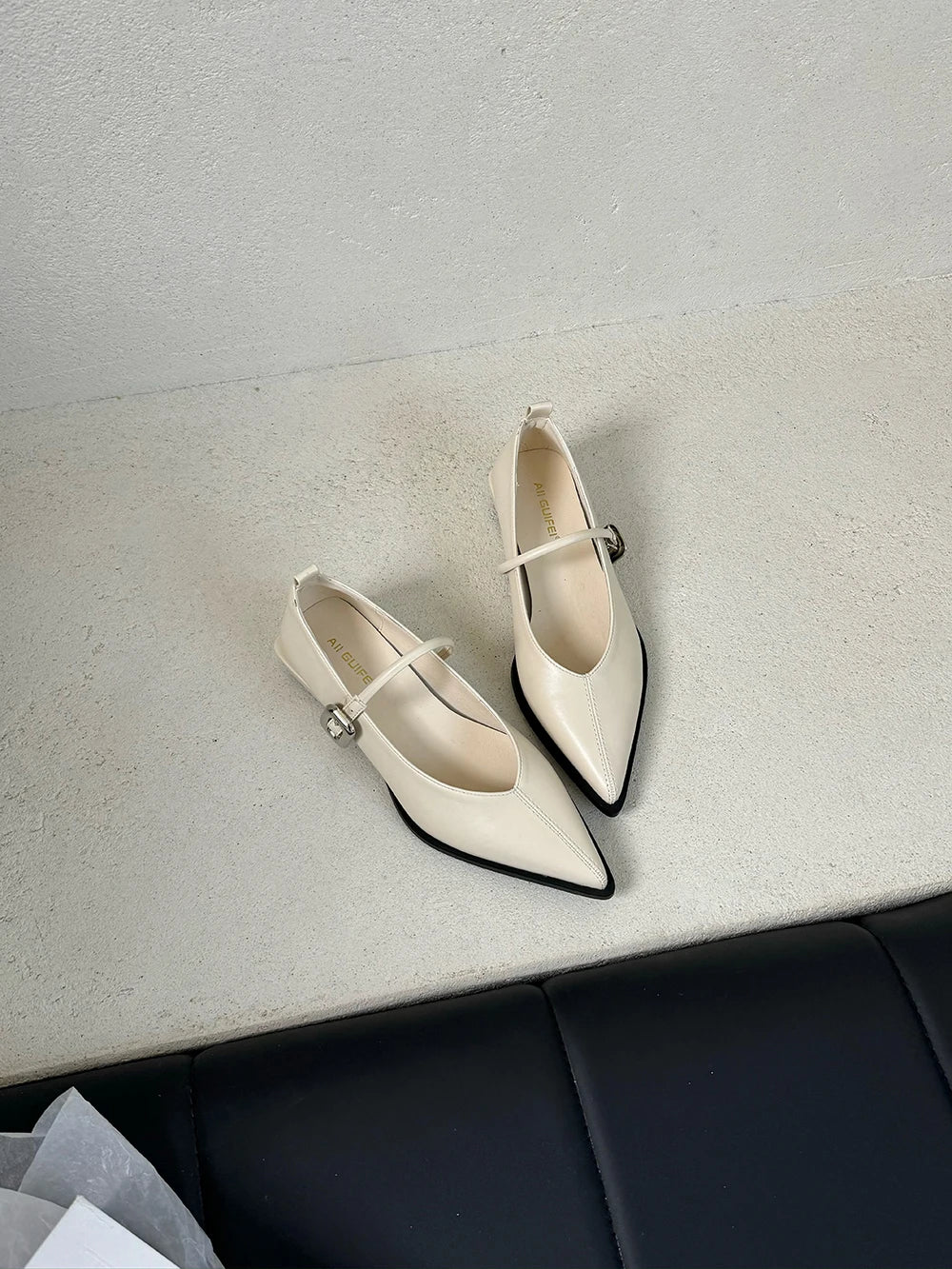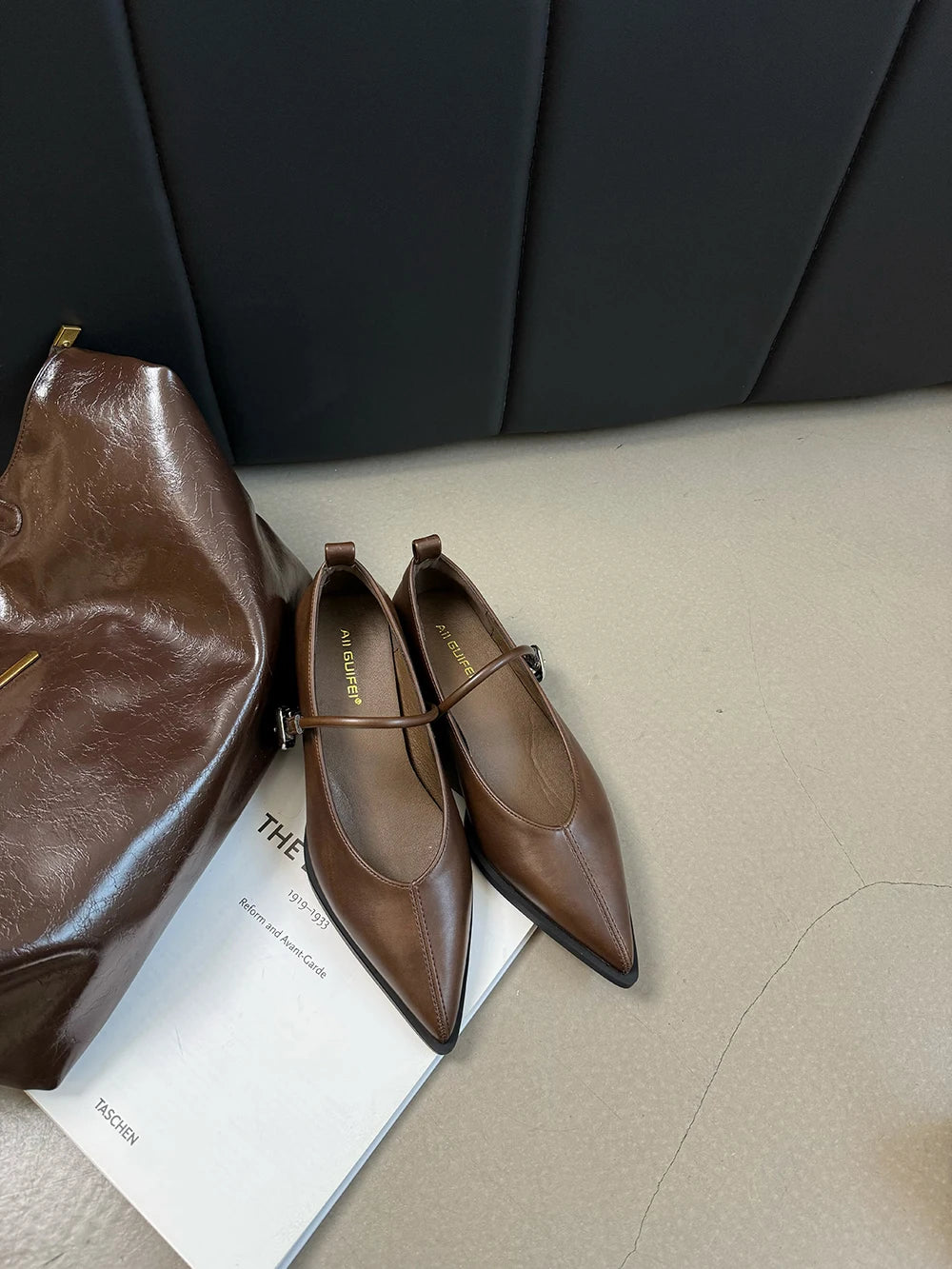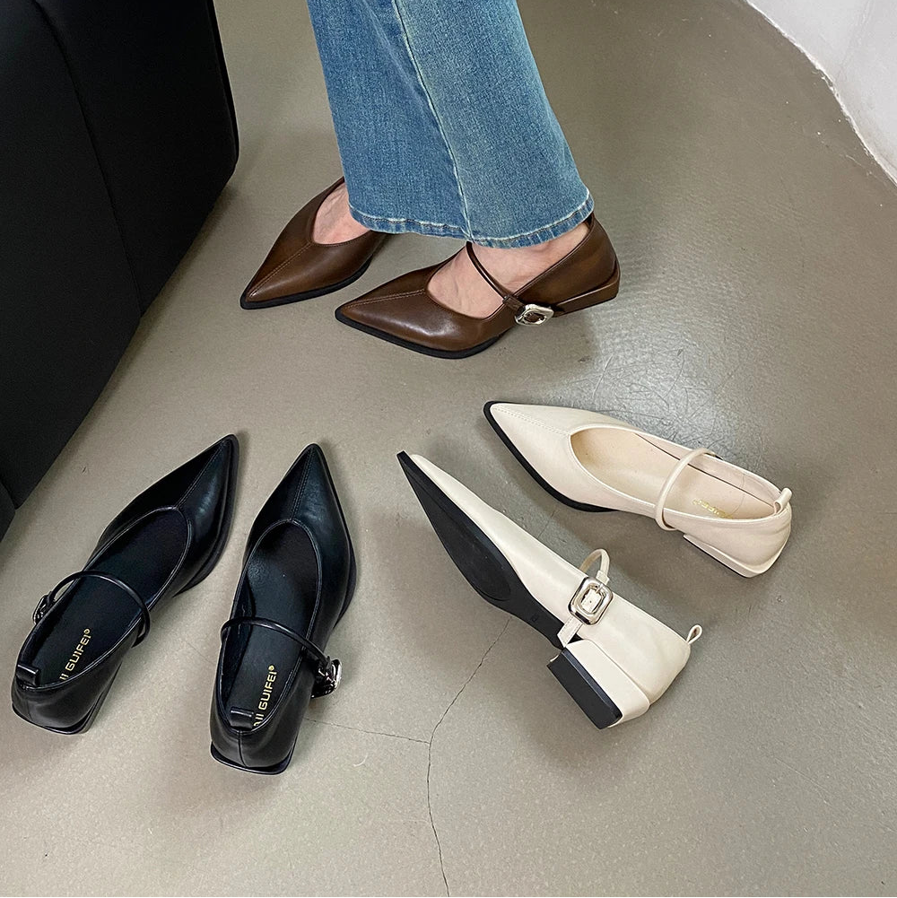 Design: Chic pointed-toe flats featuring a sleek, slip-on design with a minimalist solid-color finish. The refined silhouette adds a touch of effortless sophistication to any outfit.