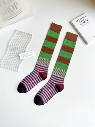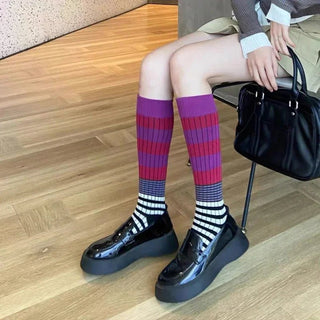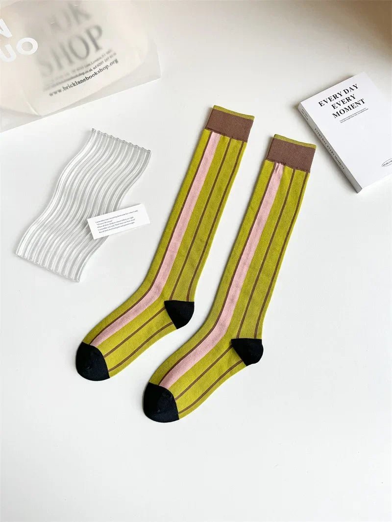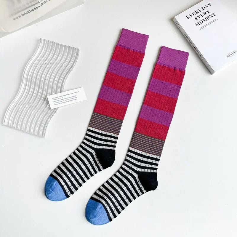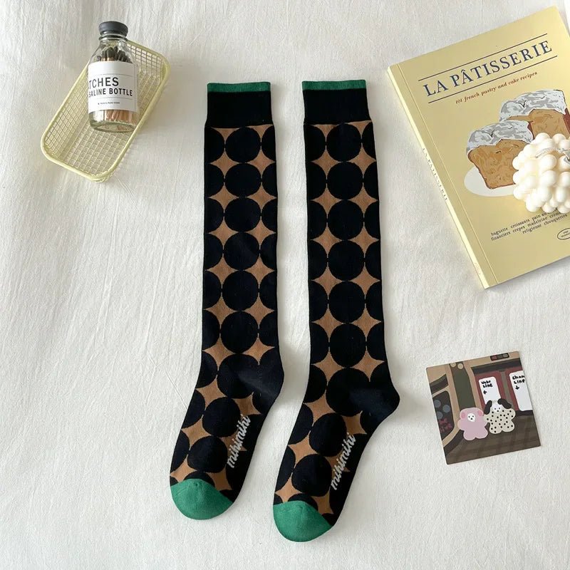 Design: Retro-inspired knee-length socks with an elegant floral jacquard pattern, combining vintage charm with a modern twist. The chic design adds a stylish touch to any outfit.