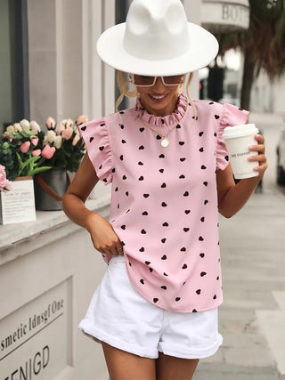 Ruffle Short Sleeve Heart Top
