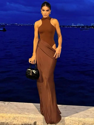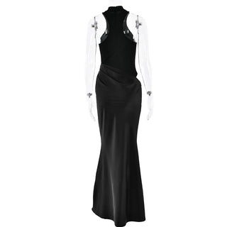 Design: Elegant satin maxi dress with sultry hollow-out details and a figure-flattering sheath silhouette for a bold, sophisticated look.
