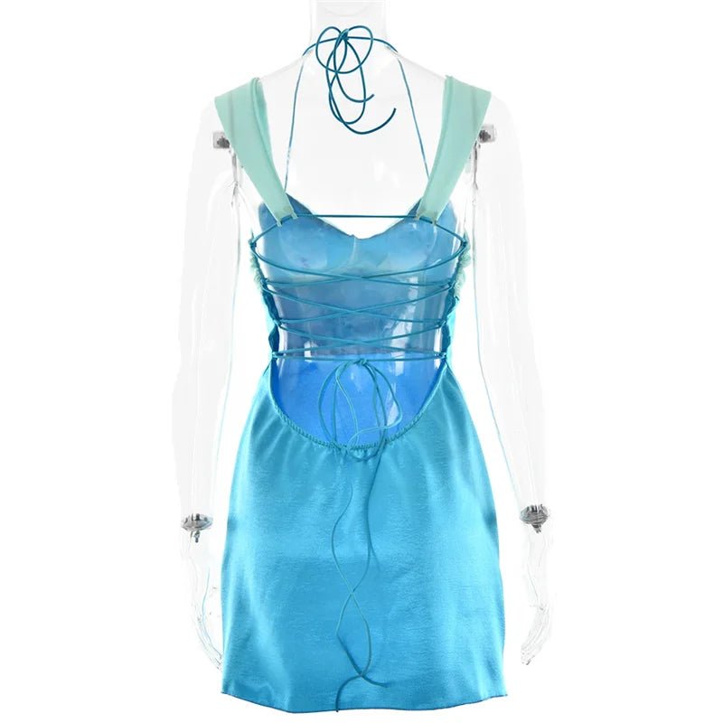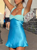 Design: A sultry satin mini dress featuring a sleek sheath silhouette, square neckline, and delicate spaghetti straps. The lace-up back adds a touch of allure, while the strapless camisole design brings effortless elegance to your night-out look.