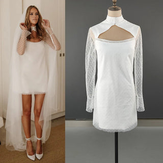 Sheer Sleeve High-Neck Mini Wedding Dress