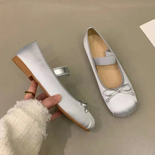 Silk Square Toe Bowtie Ballerina Shoes