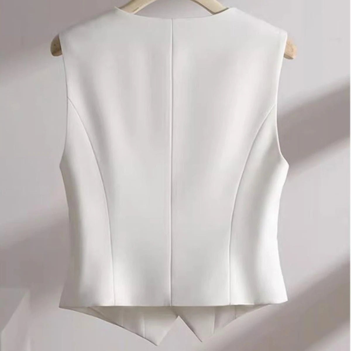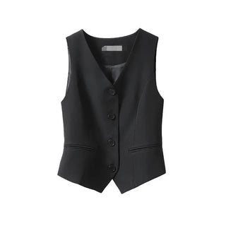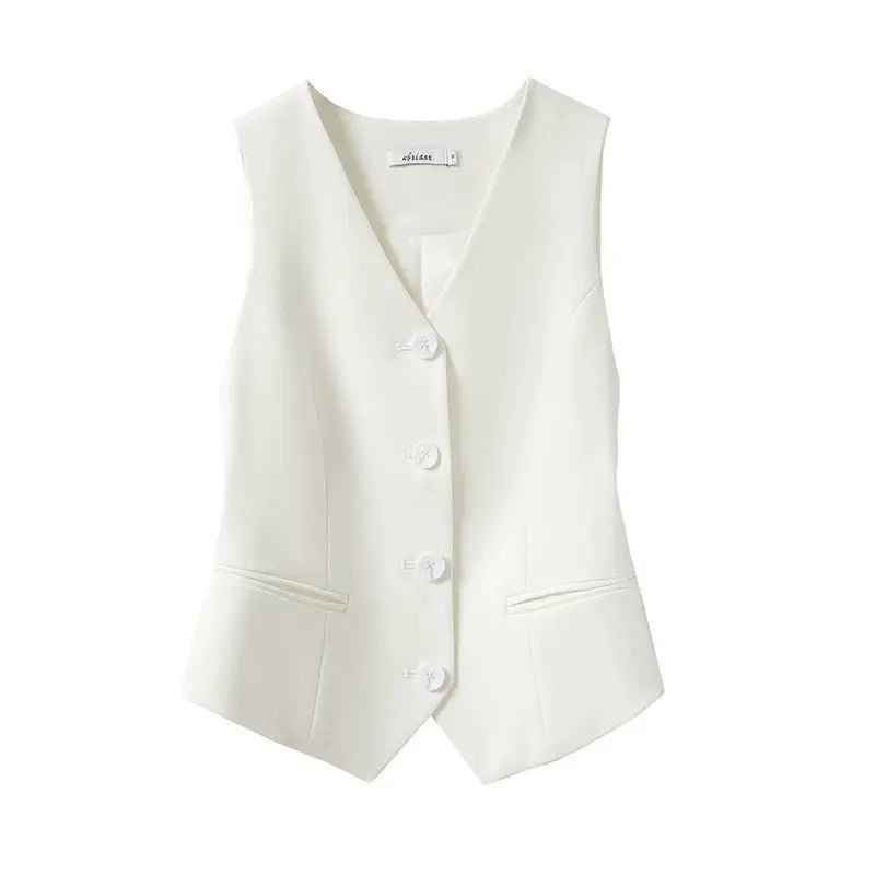 Design: A simple and chic single-breasted vest featuring a V-neckline and sleeveless design. The solid pattern and button detail create a fashionable and casual outerwear piece, perfect for daily wear.