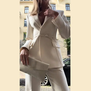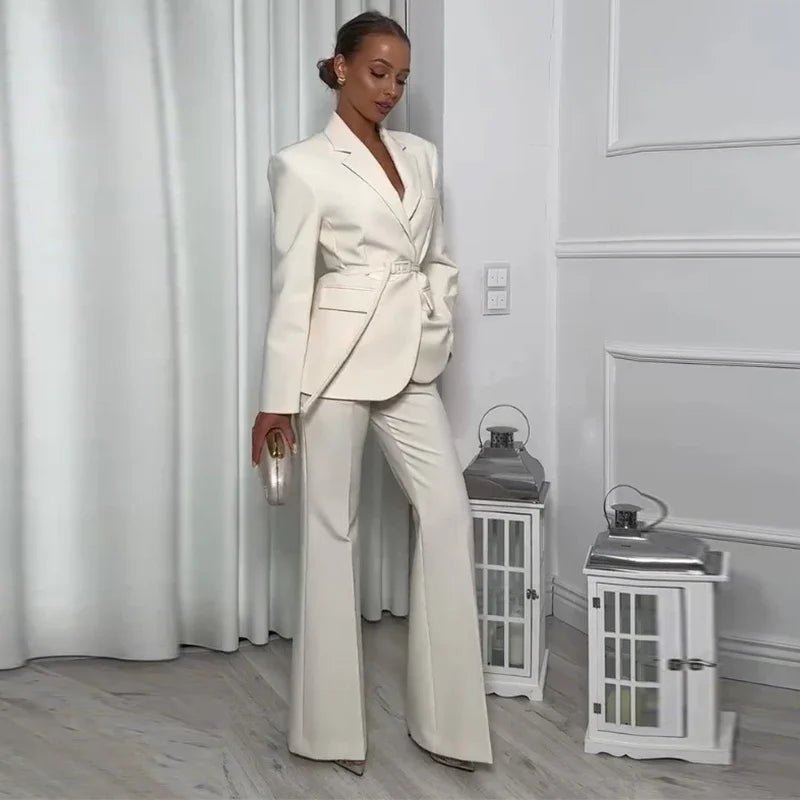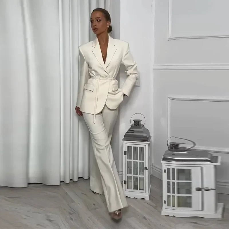 Slim Fit Blazer & Pants Set Wide Leg with Belt