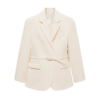 Design: A sophisticated two-piece set featuring a slim-fit blazer with a turn-down collar, paired with high-waisted wide-leg pants. The set is complete with a belt, adding structure and an elegant touch to the ensemble. The loose fit and flat front style provide comfort and versatility.