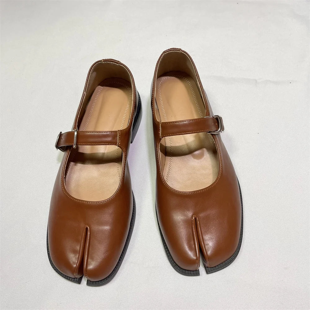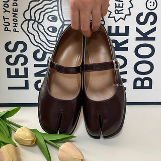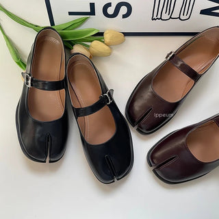 Split Toe Leather Flat Shoes