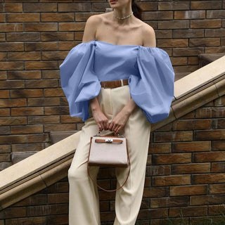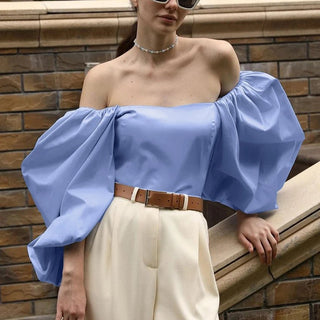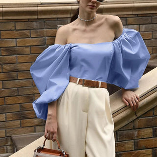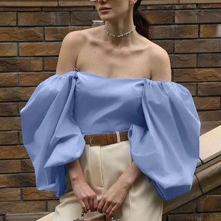 Off Shoulder Square Collar Puff Sleeve Blouse