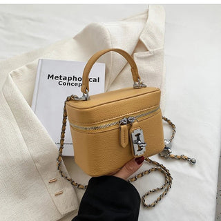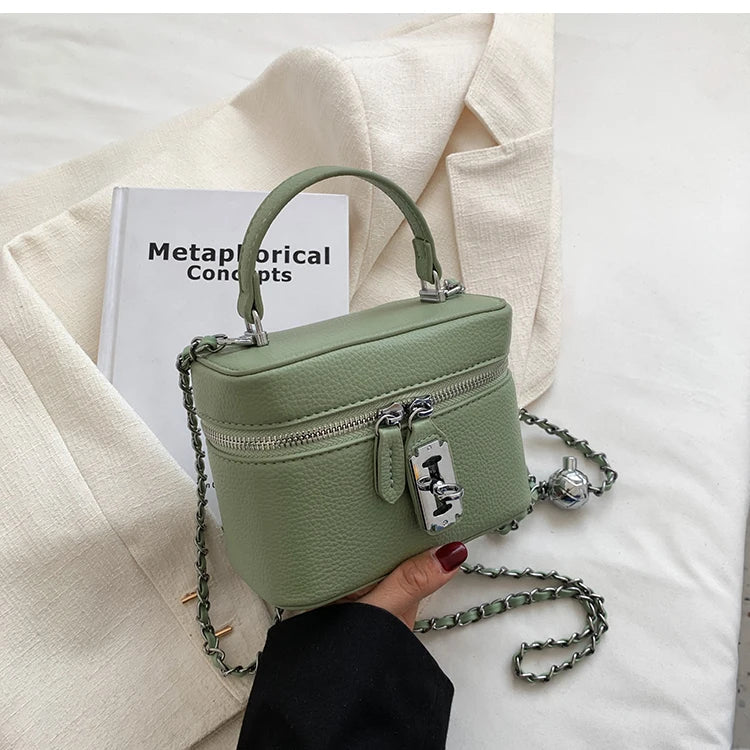 Design: A chic square crossbody handbag featuring fashion chains for a trendy touch. The bag includes a flap pocket and a zipper closure for secure storage, making it both stylish and functional.